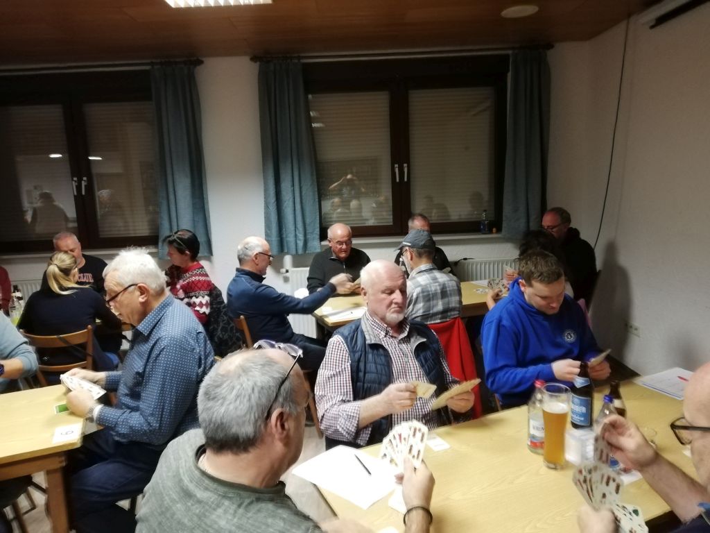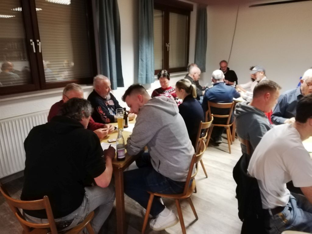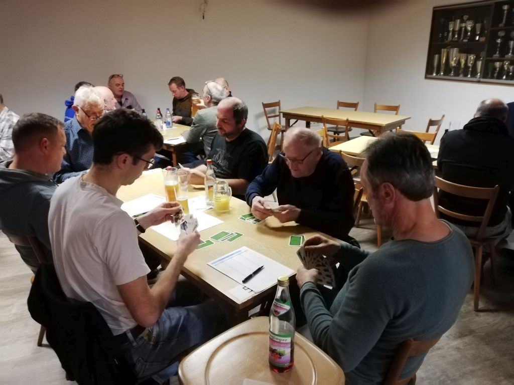 Es konnten zahlreiche Stammspieler begrüßt werden, aber auch neue Gesichter aus der Gemeinde und der näheren Umgebung. Hart um Punkte gekämpft wurde in 9 Dreiergruppen in 2 Runden mit jeweils 15 Spielen. Nach der ersten Runde gab es eine Pause zur Stärkung, bei der unser Wirtschaftsteam mit Uli, Andrea und Karin die Teilnehmer bestens versorgt haben. Kurz vor Beginn der zweiten Runde wurden die Halbzeitergebnisse von Michi Binder bekannt gegeben, dann ging es gestärkt in die zweite Runde. Gegen 22:30 Uhr waren die Ergebnisse der beiden Runden ausgewertet und Organisator Uwe Zwicker konnte folgende Sieger prämieren: Bernd Wollinger konnte mit dem 1. Platz seinen Platz aus dem Vorjahr verteidigen, Platz 2 ging an Bernd Nägele, Platz 3 an Josef Nägele und der 4. Platz an Silvia Riedel aus Geislingen.