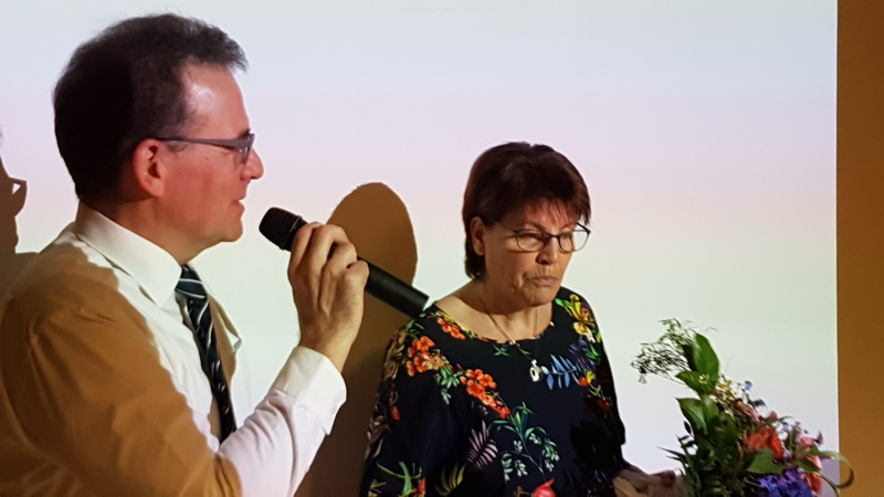 Nach den Wahlen wurde die scheidende Kassiererin Heidi Vesenmaier für Ihre langjährige Tätigkeit im Verein geehrt. Zählt man alle Ämter und Tätigkeiten zusammen, ergeben sich über 175 Jahre Vereinsarbeit. Für diesen langen Zeitraum erhält sie vom Verein eine Ehrenurkunde und ein Präsent. Der Vizepräsident des Turngau Staufen, Jörg Allmendinger verleiht Heidi Vesenmaier die silberne Ehrennadel des Schwäbischen Turnerbundes und eine Ehrenurkunde. Nach der Versammlung, die am 21:40 Uhr endete, erfreuten sich die Anwesenden noch am Buffet bei Sekt und Häppchen, welches die Frauen des Frauenturnens und der Hopfgazellen vorbereitet haben und ließen den Abend in geselliger Runde ausklingen.